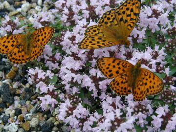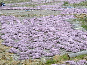 タイムの仲間でとても匂いの強い花のため、昆虫がたくさん集まってきます。10cm〜20cmくらいの高さで地を這い、花の盛りには紫のじゅうたんのようになります。自生では大雪渓を登りきった白馬岳直下のお花畑などで見ることが出来ます。