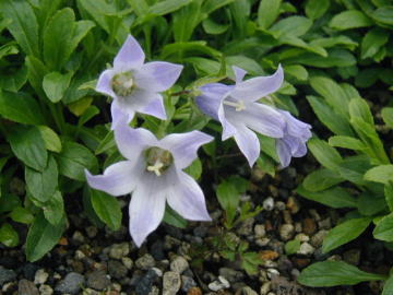 よく似た花です。チシマギキョウは横向きかややうつむきかげんに咲き、花びらの内側に毛があます。イワギキョウはやや上向きかげんに咲き、花びらに毛がありません。自生では五竜岳はじめ稜線付近で見ることが出来ます。