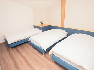寝室はセパレートになっております。静かな落ち着いた部屋で快適な睡眠を。2世帯家族も一緒に過ごして頂けます。