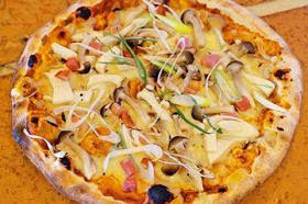 47とJA全農長野のコラボピザ!シャキッときのこ♪とろ〜りチーズ!味の決め手は鬼無里村のこしょう味噌!これぞ信州「味のお・も・て・な・し」にイタリア人もびっくり!