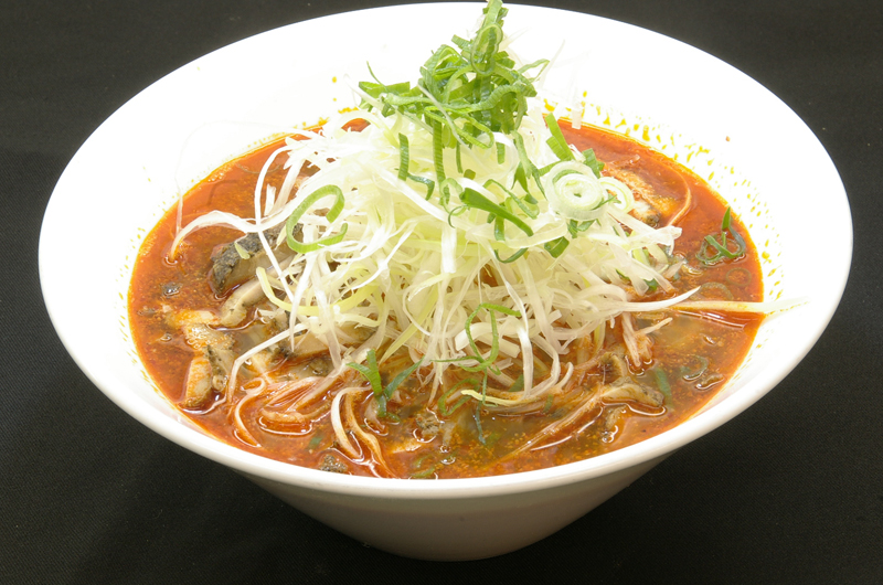 激辛スープに刻み焼豚と白葱が絶妙!寒い日にはたまりません。