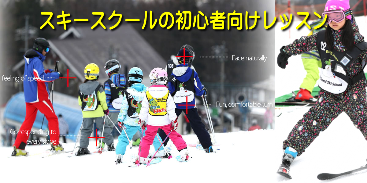 スキーが全く初めて、または数回したことがあるが、初級者程度のお子様(4歳以上~)を持つご家族