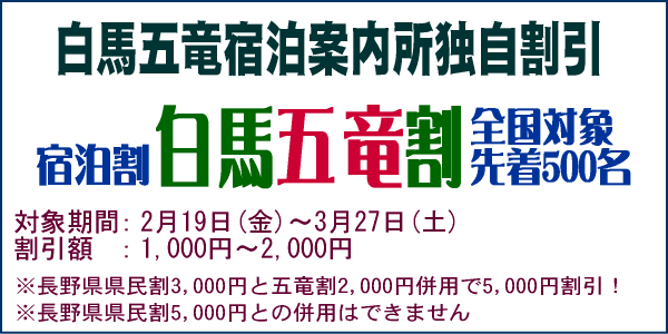 ![]() | 【リフト券付き宿泊プラン】 五竜行事Ⅰ |