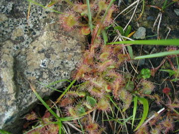 モンセンゴケは酸性の湿地に生え、花は白くてかわいらしいが、葉から消化粘液を出し捕虫する食虫植物ですって・・・・こちらも、お〜怖い怖い。