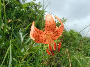 アルプス平自然遊歩道の夏本番を告げるコオニユリ。青空の下で見るその鮮やかな色はまぶしいくらいです。対照的にミネウスユキソウは控えめな花で、その名の通りうっすら雪を被ったように先端が白い毛に覆われています。かの有名なエーデルワイスの仲間です。