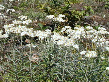 この2種も秋にはおなじみの花です。特にワレモコウは遠くから見ると枯れ草かしら?秋だなぁ・・・と思ってしまいますが近づいてよく見ると濃い赤色をしています。ヤマハハコはアルプス平自然遊歩道、小遠見山トレッキングコースで見られますが、アルプス平からHakuba47へのコースに大きな群生地があります。