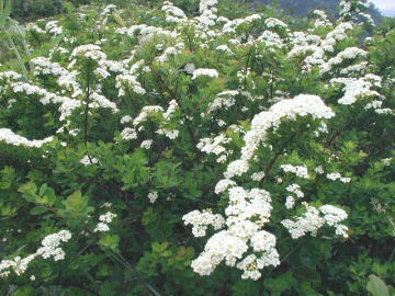アルプス展望リフトから地蔵の頭を目指し階段状の道を登ると迎えてくれるのがこの花です。近づいて見ると6〜7mmの小さな花がたくさん集まっているのがわかります。日当たりのよいところにに生育する落葉低木。地蔵の頭では、この後