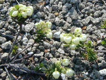 つつじ科の中で葉が栂に似て細いものがツガザクラと呼ばれているようです。そのなかで花色が薄い緑色と他とちょっと違うのがアオノツガザクラです。アカモノは小遠見山トレキングコースを代表する花です。アオノツガザクラはアカモノより標高の高いところで生育しているようで小遠見山トレキングコースでは見られません。