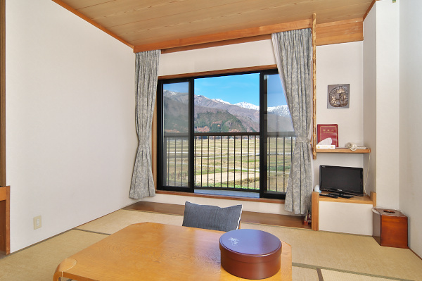 北アルプス側の客室からは八方尾根の向こうに白馬の山並みを望むことができ、またスキー場側の客室からは、白馬五竜スキー場の賑わいを楽しむことができます。