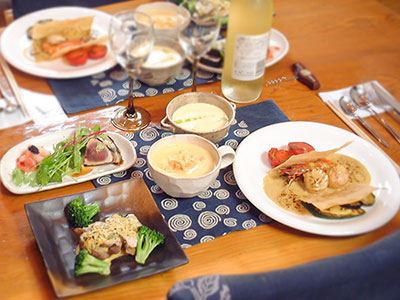 宿泊の夕食以外にも食事会もお受けしております。(村内の送迎可能)