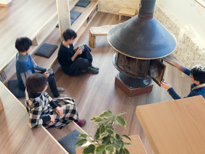 木塵が始まった頃からずっとある薪ストーブ。その周りには自然と人が集まり談笑が生まれます。炎を眺めて過ごす時間はゆったりと、豊かな思い出のひとつとなることでしょう。