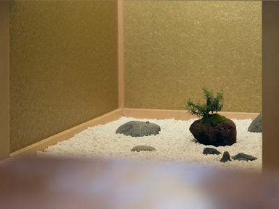 派手で豪華ではないけれど、必要最低限を備える部屋。枯山水の小庭を眺め、時間の中で変化する光を美しいと感じる。