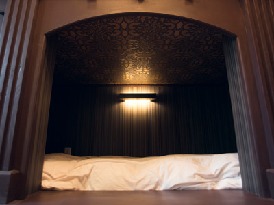 小さな箱部屋にベッドを置いたビジネスホテルの様な…ではない、最も手間と時間をかけた内装スゴイデザインと演出の醸し出す異空間めいたアトモスフィアは実際どうかしている。古事記にも書いてある。あな、ゴウランガ!