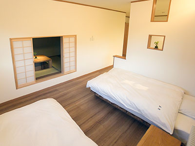 寝室はセパレートになっております。静かな落ち着いた部屋で快適な睡眠を。2世帯家族も一緒に過ごして頂けます。
